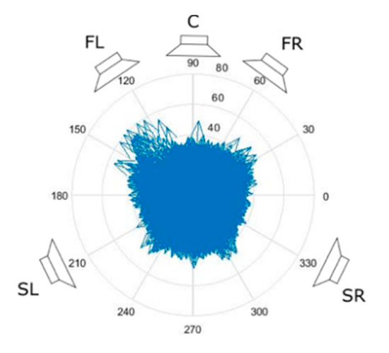 Sound intensity impulse response of a real room as source of spatial impulse responses for surround sound systems. (FL—front left; FR—front right; C—center; SL—surround left; SR—surround right).