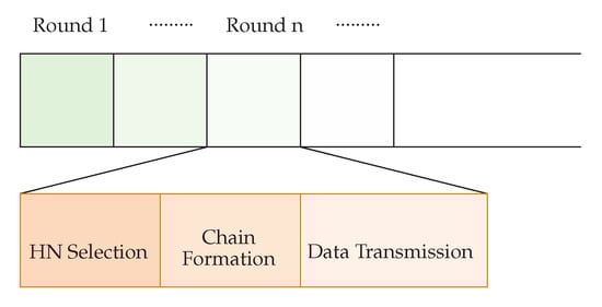 - Chen, K.H.; Huang, J.M.; Hsiao, C.C. CHIRON: An energy-efficient chain-based hierarchical routing protocol in wireless sensor networks. In Proceedings of the Wireless Telecommunications Symposium, Prague, Czech Republic, 22–24 April 2009; pp. 1–5. [Google Scholar]