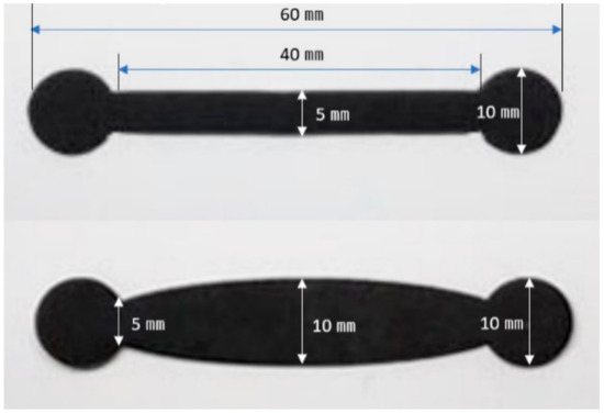 where R is the electrical resistance of the sample (), is the electrical resistivity of the material (), L is the distance between measurement electrodes (m), and S is the section surface area of the sensor (m2) [3].