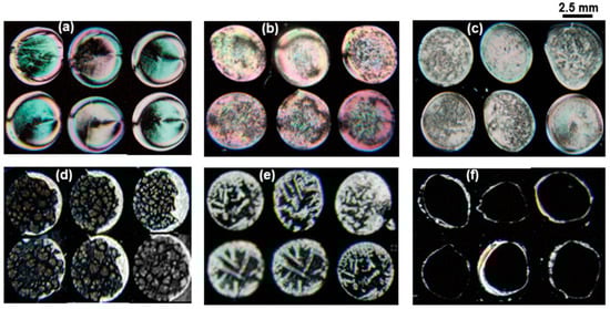 - Carlton, R.J.; Ma, C.D.; Gupta, J.K.; Abbott, N.L. Influence of specific anions on the orientational ordering of thermotropic liquid crystals at aqueous interfaces. Langmuir 2012, 28, 12796–12805. [Google Scholar] [CrossRef]