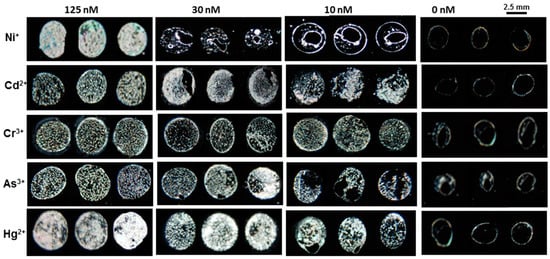 Images show the limit of detection of heavy metals ions with 3 μg mL−1 of BSA.