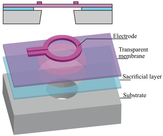 Schematic view of the basic structure of the transparent membrane and the heater. Note that the metallization is not included in this view.