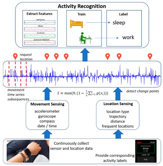 Observing, recognizing, and analyzing human activities form a foundation for scientific fields such as anthropology, archeology, sociology, and psychology. With the maturing of wearable sensors and computers, a person’s activities can now be monitored around the clock via mobile sensors. What is more, given the 127 million smartwatches that were sold last year alone, the volume of already-collected activity is unprecedented. Researchers can analyze this data to validate theories of human behavior and practitioners can gain insights that allow them to provide personalized recommendations and treatment plans. The impacts of this “activity wave” are profound. The earliest wearable fitness trackers debuted over a decade ago. Building on their foundation, researchers have applied these mobile technologies to cognitive and physical health monitoring [,,,], activity-aware recommendations [], sports evaluation and training [], lifelogging [], and behavior intervention [].