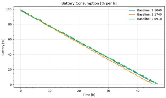 Baseline energy consumption on smartwatch over three runs from full charge until battery depletion.