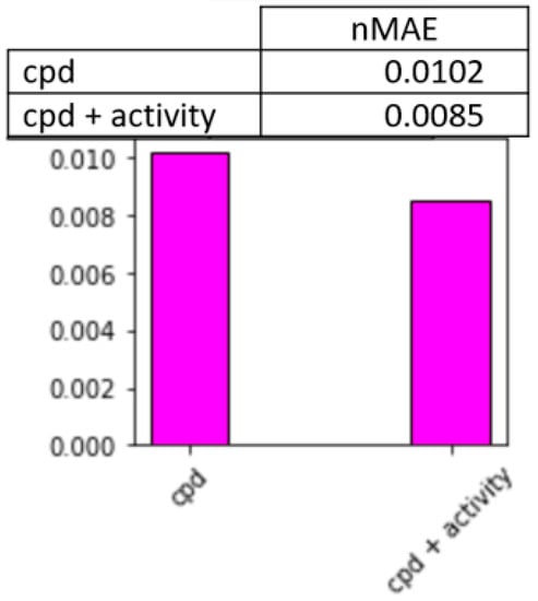 Normalized mean absolute error of location accuracy estimation between change points with and without activity information.