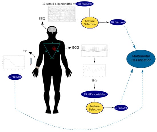 - Chen, J.; Hu, B.; Xu, L.; Moore, P.; Su, Y. Feature-level fusion of multimodal physiological signals for emotion recognition. In Proceedings of the 2015 IEEE International Conference on Bioinformatics and Biomedicine (BIBM), Washington, DC, USA, 9–12 November 2015; pp. 395–399. [Google Scholar]