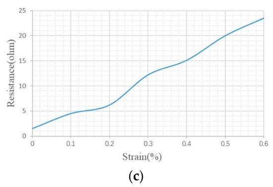 Flexible conductive materials can potentially be applied in human motion sensors, health monitoring for medical monitoring systems such as respiratory rate, heart rate and body posture to human–machine interface and wearable integrated devices that have attracted widespread attention [1,2,3,4,5,6,7,8,9,10]. Most common flexible sensors are made of conductive metal nanoparticles, metal films, carbon nanotubes and graphene [11,12]. Every material has its own conductivity; however, their working strain range is small and thus limits their practical application [8,13,14]. In the design of a strain sensor corresponding to human movement, the following key factors must be considered—large strain range, fast recovery deformation and high sensitivity [15,16,17]. Some special sensors (such as electromyographic signal) can be used to sense the activity of muscle and have great potential for human movement detection [5,18,19]. However, most of these systems require additional hardware that increases the costs, reduces user comfort and are not easily integrated into other wearable devices [20]. Other researchers considered motion sensors, such as smart bracelets and watches that use multi-axis acceleration sensors and gyroscope sensors to calculate steps and distance recognition; however, these sensors cannot accurately identify human movements [10,21]. In addition, algorithm problems induce errors in calculating steps, thus making the results greatly different from the actual situation [22,23]. Strain sensors are one of the key components of the interface between human motion and electrical signals. Some highly sensitive strain sensors made of nanomaterial and graphene materials can detect small movements, such as vocal cord vibration detection, pulse detection and respiratory monitoring [15,19,24]. Conductive fabrics are a promising material due to their high flexibility, comfort to human skin and ease of weaving and integrability with other wearable sensors [25,26]. Conductive properties are introduced into text-based strain sensor by integrating flexible devices into the fabric, embedding conductive yarns into the fabric structure or coating the fabric surface with conductive materials; the textile strain sensor can be formed using yarn or fabric and through the electrochemical method [26,27,28]. The circuit path is formed through internal interaction and is induced by the large or small deformation of fabric caused by human movements. Given the high elasticity of coil structure, textile is one of the most common materials for a sensor structure and knitted conductive fabric is suitable for human movement and stretch recovery and thus can be used as flexible strain sensor [29,30].