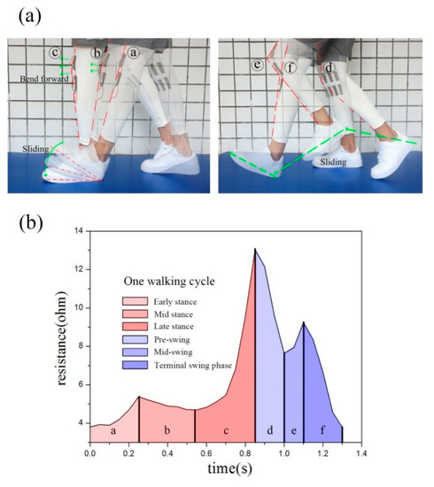 As shown in Figure 3a, the resistance change of each cycle clearly exhibits stance and swinging periods.
