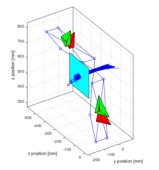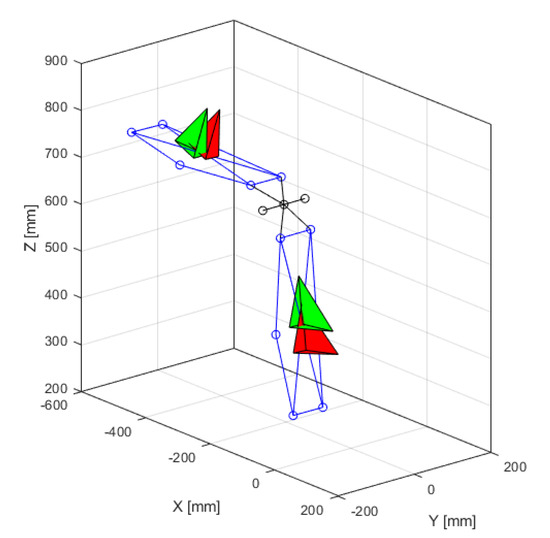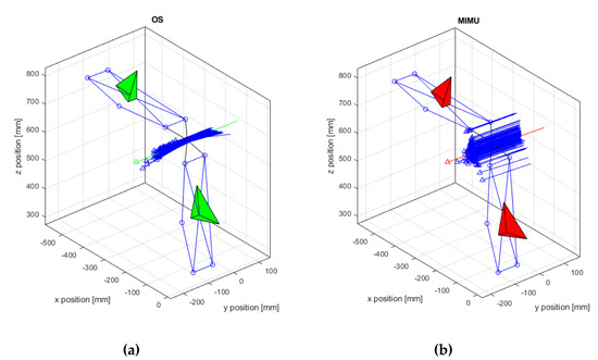 The reference systems of the MIMUs, expressed in CS {0}, are depicted in Figure 2 and were mathematically represented using rotation matrices: and , which were analogous to the matrices represented in Equations (1) and (2).