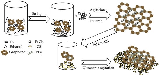 The synthesized progress of Gr/PPy/CS nanocomposites.
