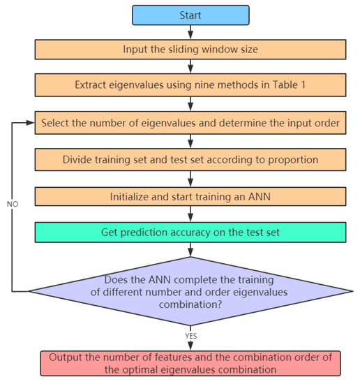 As shown in Figure 3, the number of eigenvalues and the combination order need to be continuously changed, and the combination of eigenvalues obtained each time are input to the ANN for training to get the prediction accuracy of the test set. Finally, the combination of eigenvalues with the highest prediction accuracy is the optimal combination of eigenvalues.