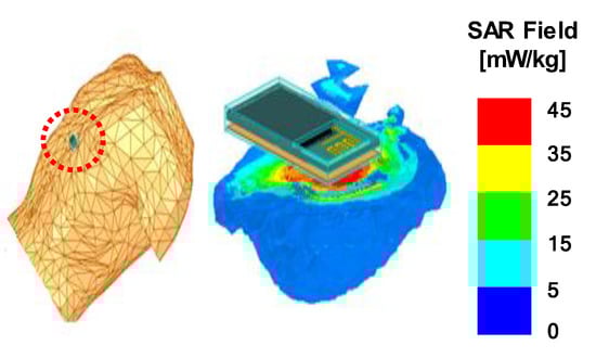 - Hadjem, A.; Lautru, D.; Dale, C.; Wong, M.F.; Hanna, V.F.; Wiart, J. Study of specific absorption rate (SAR) induced in two child head models and in adult heads using mobile phones. IEEE Trans. Microw. Theory Tech. 2005, 53, 4–11. [Google Scholar] [CrossRef]