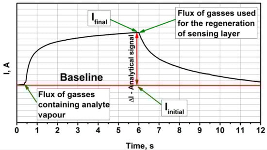 2.5. Determination of Analytical Signal towards Reducing Gases by TiO2-x/TiO2-Structure Based Sensor