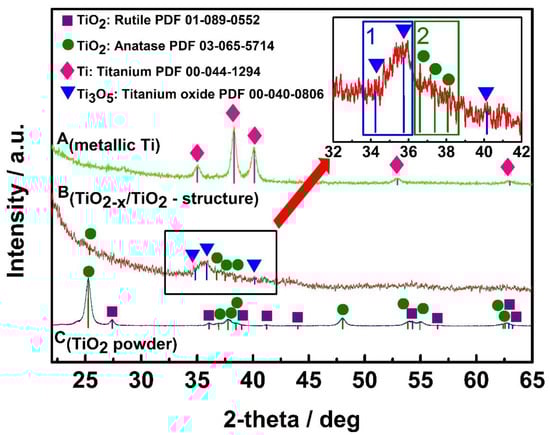 - Hashimoto, S.; Tanaka, A. Alteration of Ti 2p XPS spectrum for titanium oxideby low-energy Ar ion bombardment. Surf. Interface Anal. 2002, 34, 262–265. [Google Scholar] [CrossRef]