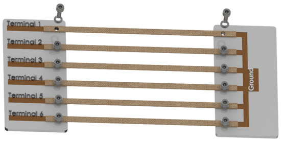 - Fernández-García, R.; Gil, I.; Cano, F.; Parés, F. Crosstalk characterization of fabrics elaborated with conductive yarns. In Proceedings of the 2016 International Symposium on Electromagnetic Compatibility-EMC EUROPE, Wroclaw, Poland, 5–9 September 2016; pp. 85–88. [Google Scholar]