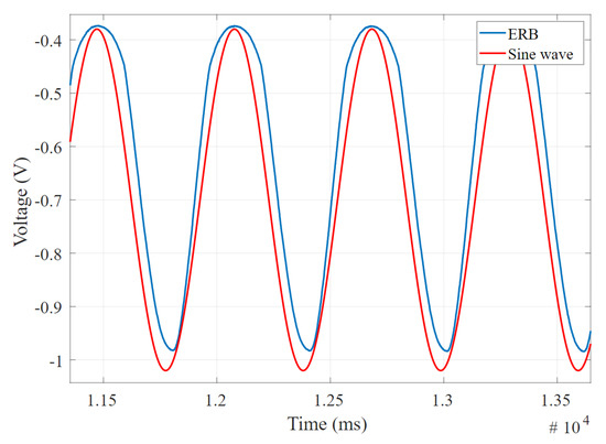 Total Harmonic Distortion is an important figure of merit used to quantify the level of existing harmonics in any type of waveform [36]. If the bands are linear and the actuator provides a accurate sine wave, the band output voltage should appear as a similar sine wave pattern. In contrast, having a sinusoidal wave as an input, most of the experiment output from the bands are multi-frequency wave or a complex wave, which contains the fundamental frequency component of the input signal and an associated range of harmonics. The THD is measured by measuring the total energy which appears at the output of the system at harmonics of the input frequency [37]. The total harmonic distortion is approximately the square of the total signal’s power, which is the sum of the first five harmonics divided by the fundamental frequency using a modified periodogram of the same length as the input signal. Equation (1) shows the equation to calculate the total harmonic distortion [36] by dividing the energy of first five harmonic by the fundamental frequency: