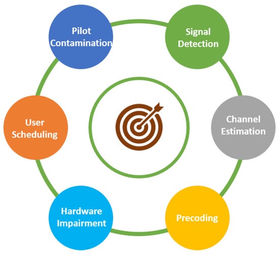 - Since there are limit number of orthogonal pilots that can be used in a particular time, the pilot contamination becomes one of the significant challenges in massive MIMO deployment. Pilot contamination increases interference and limits the achievable throughput. Several research has been conducted to mitigate the effect of pilot contamination. However, there is a need for an optimal method that mitigates its effect [58,59,60,61,62,63,64,65,66,67,68,69,70]. Thus, effective ways to mitigate the pilot contamination effect is an essential area to investigate.