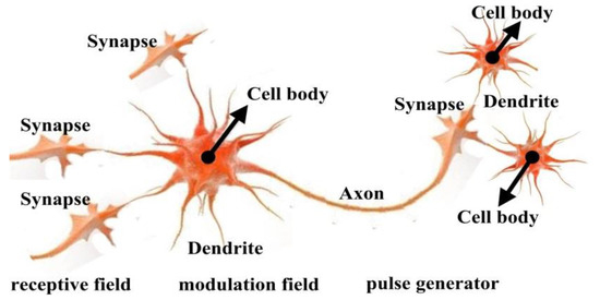 The brain, as is well-known, perceives the outside world through a complicated neural network of visual cortex neurons. The information of the real world is transmitted by thousands of neurons in the network. Each neuron consists of the cell body, the synapse, the axon and the dendrites. As shown in Figure 1, the cell body receives the electrical impulses from the synapses of other neurons via its dendrites. The membrane potential of the cell body rises as the neuron continues to be stimulated by other neurons. The electrical impulse is generated when the membrane potential is larger than its threshold. The threshold of current neuron changes in a nonlinear way after stimulation. On the other hand, the neuron also transmits electrical impulses to other neurons via the axon part.