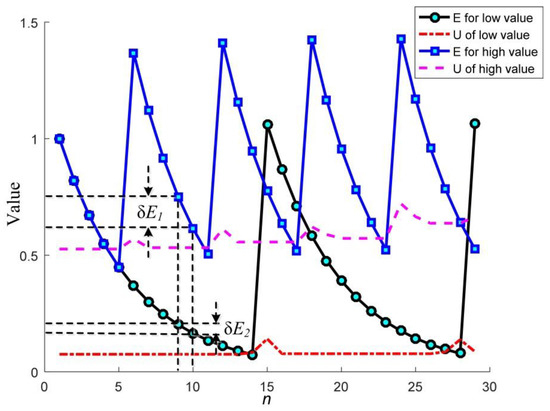 According to Equation (9), the output pulse of the current neuron ij is generated when the threshold Eij is just less than the internal activity Uij. Thus, we have the firing time as follows: