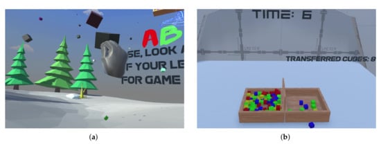 One concern about the use of VR systems could be the associated cost of devices (game-compatible PC, headset, and sensors), which will be higher than the price of the BBT box; however, the cost of VR equipment has reduced significantly since its introduction to the marketplace, and is now quite affordable. Contrary to the physical BBT, VR equipment can be used in diverse applications of rehabilitation, as it is a powerful suite for training or evaluating various functional impairments under the supervision of clinicians []. This multipurpose capability of VR technology is the main motivation for developing healthcare-related systems using VR.