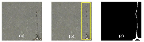Illustration of (a) crack and non-crack image classification, (b) object localization, and (c) pixel-level segmentation (open-access images from Yang et al. []).