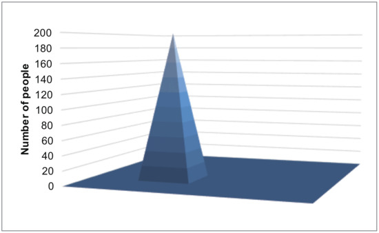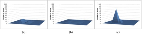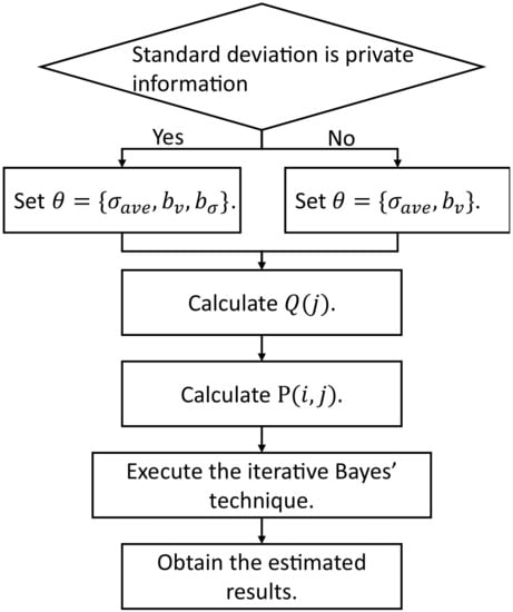 Because each sensed value is perturbed separately, we can calculate = *. Then, the data collector executes the iterative Bayes’ technique using (Lines 21–40 in Algorithm 2). Finally, the data collector obtains each estimated number of people in each two-dimensional bin (Figure 14).