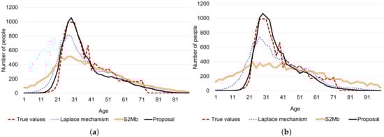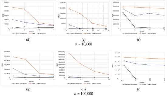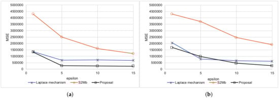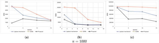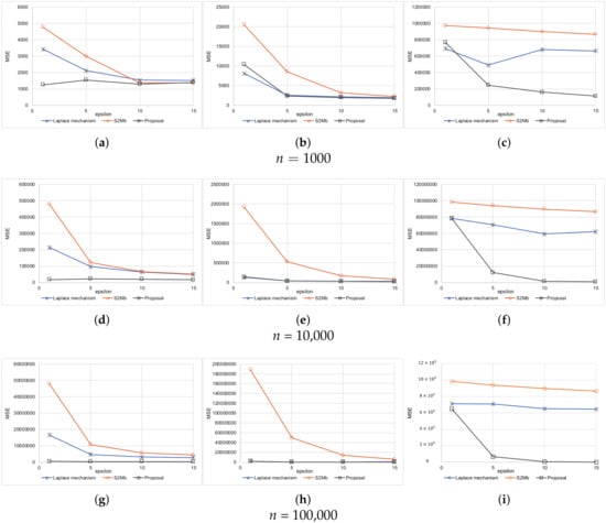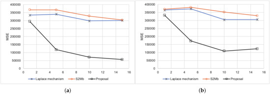 There are many privacy metrics other than differential privacy. For example, k-anonymity was originally proposed as a privacy model when publishing medical data [45], and it is used today in many studies [46,47]. k-anonymity ensures that there are k or more records that have the same quasi-identifier values so that k-anonymity can protect against “identity disclosure”. For example, a method wherein a database that originally recorded ages in 1-year increments is abstracted to 30 s, 40 s, and so forth. Even in the event an attacker knows all the quasi-identifier information about a given user, because there are k or more records corresponding to that user, they cannot tell beyond a level of confidence which record belongs to the corresponding user. There are also k-anonymity related privacy metrics such as l-diversity [48] and t-closeness [49]. These privacy metrics are also important; however, applying our proposed model to privacy metrics other than differential privacy is out of the scope of this paper and considered for future work.