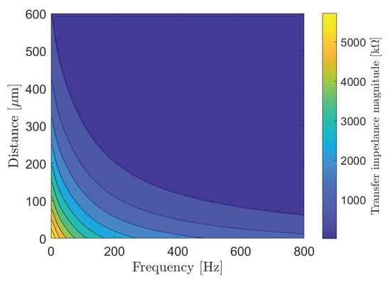 Figure 6 shows changes in the transfer impedance, that we compute from (7), against the system frequency and propagation distance between the transmitting nano-actuator and the receiving nano-actuator. As intuitively expected, the transfer impedance decreases with an increase in both frequency and distance. According to the peak transfer impedance value and given action potential threshold, we determine the maximum stimulation current of 3.81 nA which can be applied to the cells in the data transmission mode of the cardiac system.