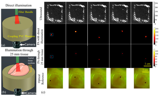 - Sivasubramanian, K.; Pramanik, M. High frame rate photoacoustic imaging at 7000 frames per second using clinical ultrasound system. Biomed. Opt. Express 2016, 7, 312–323. [Google Scholar] [CrossRef]
