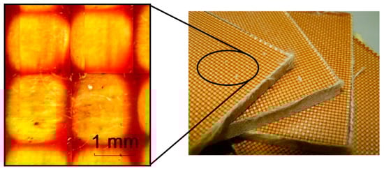 Aramid composite material used in this work is shown in Figure 1. The scale presented gives an idea of the size of the fibre in the compound and leads to a more macroscopic analysis of the induced damage.
