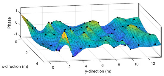 The advantages of using RSSI as fingerprints are its simplicity and low computational requirements. However, since the database only stores signal features at a finite number of points, the accuracy drops significantly at other points. This is because RSSI does not contain all the information available in the Wi-Fi signal, which could be used to improve the positioning accuracy. The whole available information appears in the channel state information (CSI). This is a complex vector whose entries represent the gain (amplitude and phase) of each subcarrier of the OFDM channel [6]. In [21], CSI was used to propose the fine-grained indoor localization (FILA) method. In this method, the fingerprint is chosen to be the square sum of CSI amplitudes. A popular choice of fingerprint consists of using the real vector formed by the amplitudes of each subcarrier [22,23,24]. However, the instability of CSI amplitudes limit the accuracy achievable with this kind of fingerprints. In an attempt to go around this, inter-subcarrier phase differences are used as fingerprints in [25]. A drawback of this approach is that CSI phases are highly sensitive to hardware imperfections. To cope with this, a phase calibration method was proposed in [26] to compensate for hardware effects.