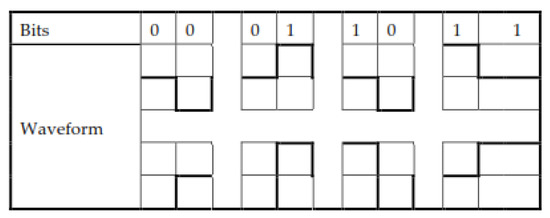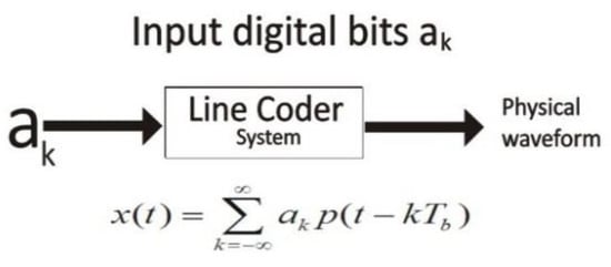 The line coder takes as input digital bits and converts them into a physical waveform, according to the modulation of the adapted line coding scheme. Figure 7 shows how the line coder system transfer digital bits into a physical waveform [29,30].