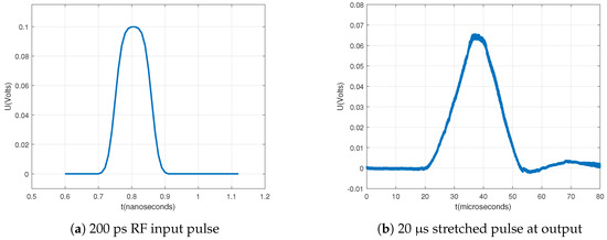 Figure 10 that the sampled pulse was stretched 100,000 times, and that measurements confirmed the simulation results. The IF output of the sampler can now be digitalized using an ADC with a 5 MSa/s or less sampling rate.