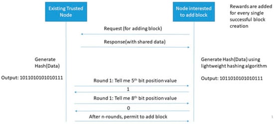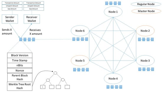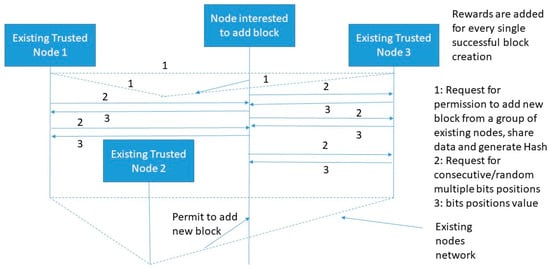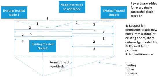 Blockchain is a peer-to-peer distributed data-ledger network constructed using consensus among nodes in a network as shown in Figure 1. Blockchain networks can be permission or permission-less. Blocks in blockchain network (BN) stores verified transaction records and are connected with relevance to its predecessor. The header of each block contains a cryptographic challenge and its solution. Nodes (miners) interested in adding a block to existing BN has to solve this challenge (usually in 10 min) before getting permission to add a block. This cryptographic challenge is generated using various means that are meaningful in consensus building [,] in different applications.There are various applications of blockchain in different domains. Some of these applications are as follows: