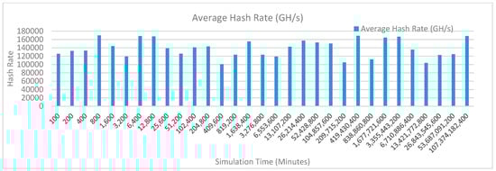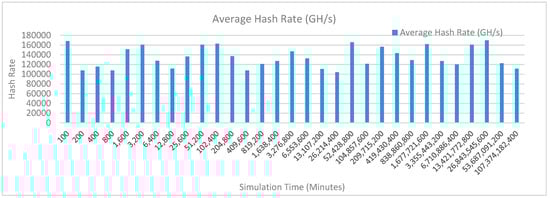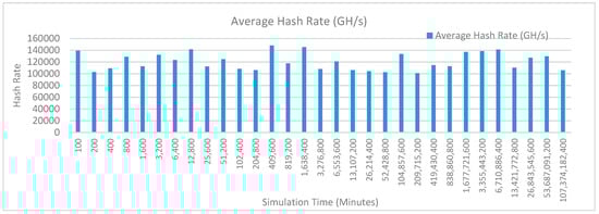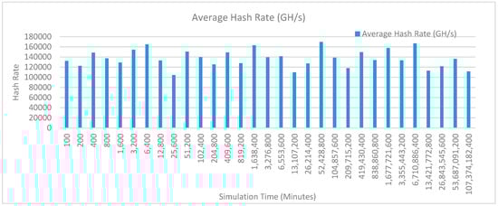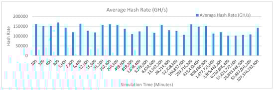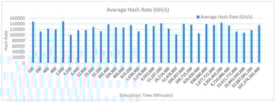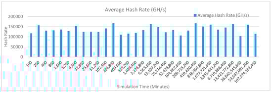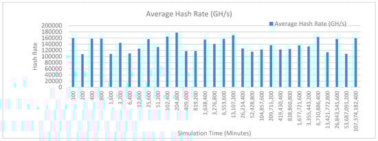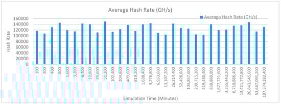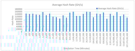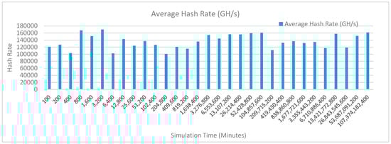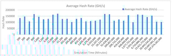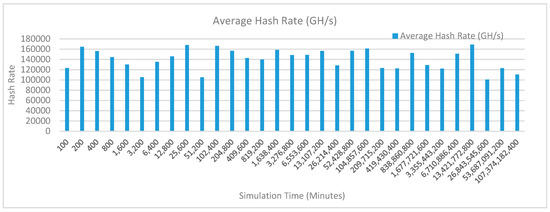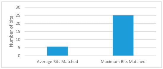 Figure 35 shows the average bits matched in the proposed PoG consensus model using AnyLogic simulation. Results show that the average bits matched are 5.66 and maximum bits matched are 25 after 3 s. This shows that the proposed PoG consensus model is having less time complexity. The average bits matched are not an exact number because some bits are in the process of matching.