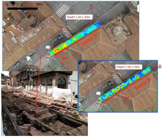 To this regard, “the London case” (1995) was emblematic. The ground-penetrating radar (GPR) investigations performed by [1] in the subsoil of central London completely failed in the light of the data produced by the subsequent excavations. These unsuccessful results suggested a new approach in the GPR data interpretation based on the identification of a sort of ‘GPR fingerprint’ for a variety of archaeological deposits and features [1]. Nevertheless, “the London case” adversely impacted the development of geophysics for urban archaeology together with two additional reasons: (1) the limits of the GPR data processing tools at that time (before 2000s); (2) and, above all, the low demand of geophysical investigations in urban area.