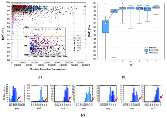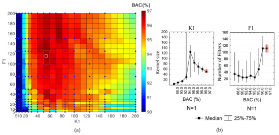 - The models of Picon et al. [60], Zubair et al. [48] and Acharya et al. [53] present the largest BAC drop (from −1% points to −5% points). The common HP setting observed in these models is the very small kernel size (three to five), which has been proven in our optimization study to have the most important impact to BAC (see Table 2);