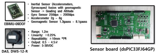The CAN (Controller Area Network) communication system was built in the embedded system for logging the output data of both draw-wire and IMU devices at the same time (Figure 11). These output data were inputted into the derived equations for estimating the end-point. To compare characteristics between two devices in the estimation of the end-point, Simulink of MATLAB was applied to these experiments.