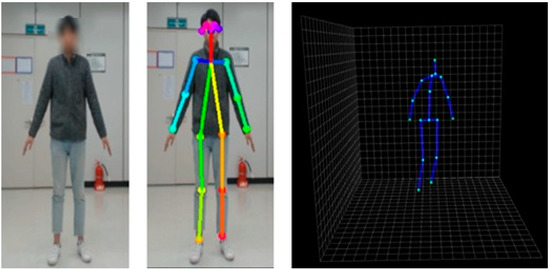 We have adjusted the 2D joint output of OpenPose to the 3D-baseline input format. Therefore, as shown in Figure 2, we obtained a total of 17 joints in 3D coordinate using a single RGB camera without a depth sensor.