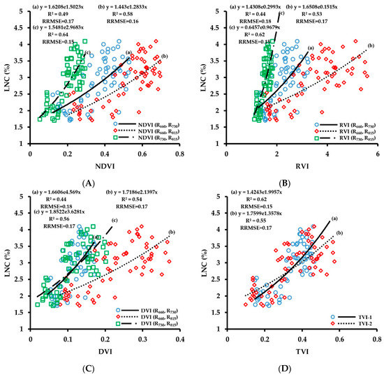 3.2.3. Fitting Results of Vegetation Indices with LNC