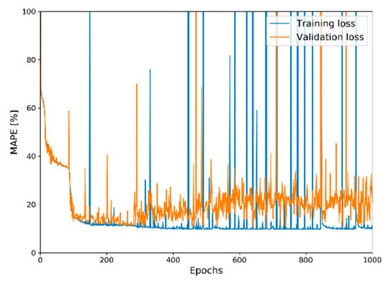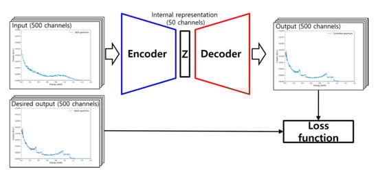 MAPE was employed for the following reason. Although there are various options for the loss function, most of them represent difference rather than relative difference between two data sets. Because the data used in this study are plastic gamma spectra, they have relatively high levels of counts in low and high channels. Therefore, other options are mostly affected by values in the low channel region, and values in the high channel region tend to be ignored. However, MAPE represents the relative difference between two data because the subtraction of two data is divided by one of them. Therefore, it can calculate the difference between two data with equivalent weights for the whole region of spectral data whether the level of count is high or low.
