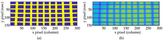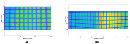 Acquired images of the calibration pattern with the (a) 30 × 20 FOV and (b) 50 × 20 FOV LiDAR prototypes.