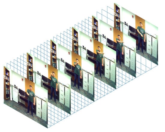 For the video data, the actions of interest in each video clip were first converted to 3D image volumes consisting of 45 image frames lasting 3 s in duration. This number was chosen since it included more than 95% of the start and end times of actions of interest. The 3D image volumes were then fed into a 3D convolutional neural network (CNN) whose architecture is described in [31]. To gain computational efficiency, each action image volume had the same spatial and temporal size of 320 × 240 × 45. An example 3D image volume formed in this manner is shown in Figure 9.