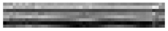 For the inertial data, eight-column images were formed by concatenating the three-axis acceleration signals, the three-axis angular velocity signals, the overall acceleration signal, and the overall angular velocity signal. These eight-column images were normalized along each column. The time span of the inertial signal images was also 3 s corresponding to 150 samples provided by the inertial sensor. To make the inertial sampling rate compatible with the video sampling rate and reduce the computation complexity, a median filter of size three was used and only one frame from every three consecutive frames was considered making the signal images of size 8 × 50. An example inertial signal image formed in this manner is shown in Figure 10. These inertial signal images were then fed into a 2D convolutional neural network whose architecture is described in [31].