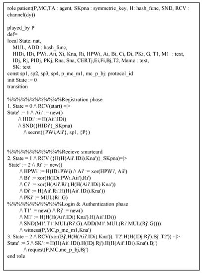 High-Level Protocol Specification Language (HLPSL) syntax of patient.