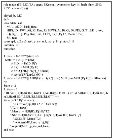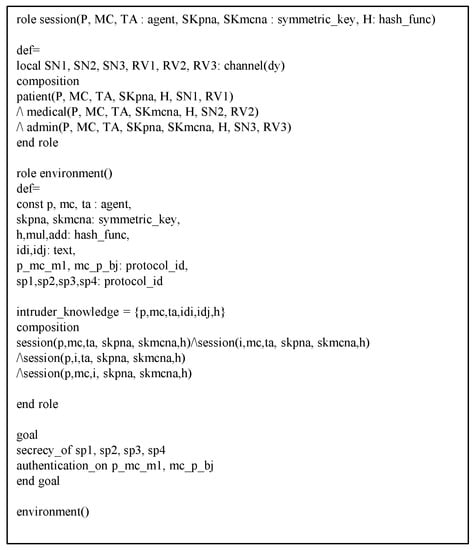 HLPSL syntax of medical center.