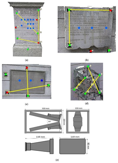 Close-range photogrammetry is another measuring technique for digital 3D reconstruction of the objects’ shape. Unlike terrestrial laser scanning, which is an active technique, photogrammetry is an image-based passive method, which provides high resolution and accurate datasets, being at the same time a low-cost solution characterized by high level of automation. These features made close-range photogrammetry very flexible and thus, widely used measuring method successfully applied in a variety of fields including civil engineering [64,65], forestry [66,67], geology [68,69], archaeology [70,71], and cultural heritage documentation [72,73].
