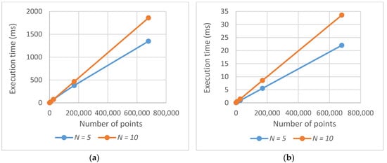The evaluation of a solution is a key process in the optimization of the problem. Therefore, the great efforts were devoted by the authors to increase its efficiency. Two main improvements were implemented: (a) the floating horizon algorithm for computing visibility of a set of points in a line with the linear dependence was implemented; (b) the obstacles were superimposed on the terrain. Thus, the resulting computational complexity of the improved algorithm was reduced as stated in Equation (16). Moreover, the implementation was optimized from the coding point of view (only operations with integers are employed in the critical parts of the algorithm). The process is also parallelized and distributed on the cores of a multicore processor: