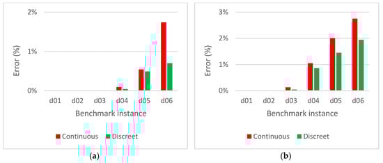 The algorithm was implemented in two versions: continuous and discrete. The former assumes all the variables of the solution to be continuous—waypoints can be deployed wherever in the area of operations. The latter one assumes the variables to be discreet with the distance between neighboring values set to the size of the rasterization step . It has an effect that the waypoints can be deployed only in the middle of rasterization squares. The discretization of each variable is performed by rounding to the nearest permitted value.