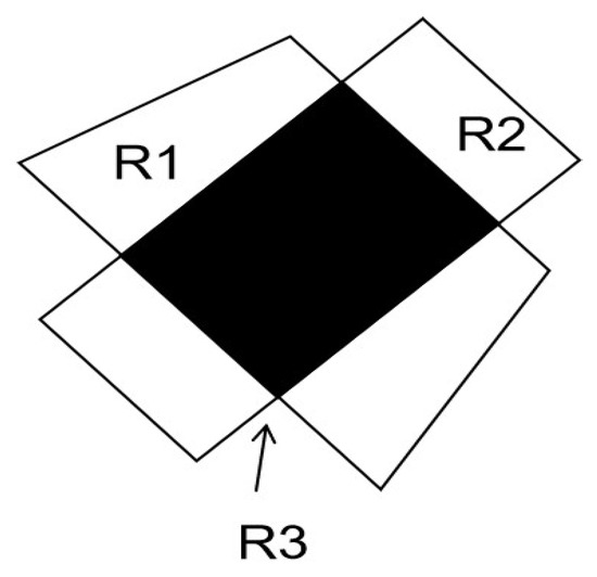 The mobile chargers are carried by robots. When the chargers start charging at a certain position, it rotates at the center of its current position. Once a fixed angle is rotated, the sensor node records the signal strength correspondingly. The final sensor node will get signal strength data similar to the Figure 7. The sensor node notifies the charger of several stronger angles about the signal. When it turns these angles, the charger finds the direction in which the strongest position of the antenna signal is pointed. Then the sensor node is in the direction indicated by the charger. However it is difficult to determine the maximum value, so the largest part of the value is treated as the maximum value, thus a shadow area is formed as shown in the Figure 8. At the same time, in order to calculate easily, the rectangular area in the figure is used instead of the actual area for segmentation. This area is further superimposed with the existing possible areas to further narrow down the possible area. The positioning effect is shown in the Figure 9, where is the possible position area obtained by the previous positioning algorithm, and is the position after the waveform is used. The resulting area is the intersection of and , which is the possible area of sensor node after waveform positioning.